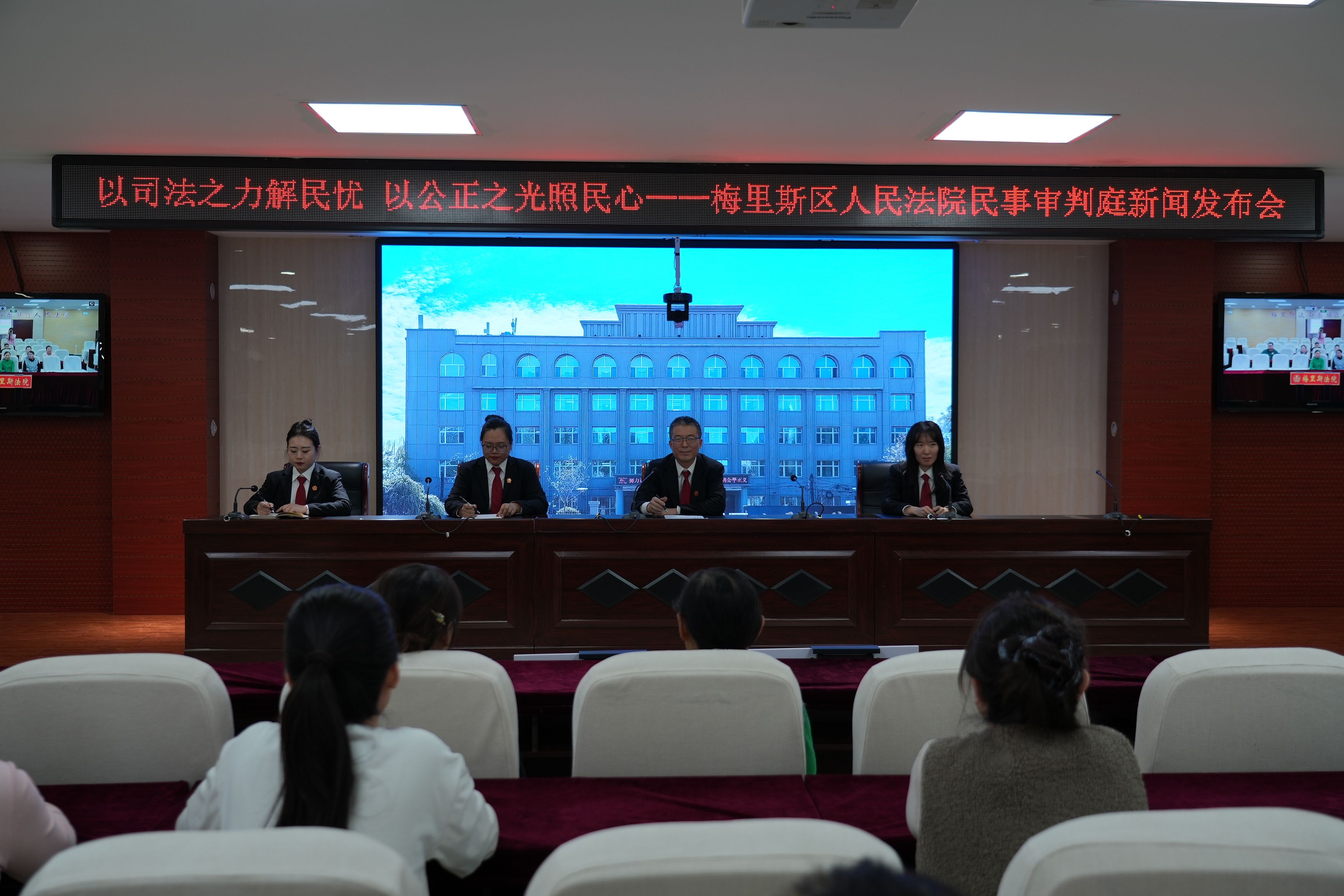 为全面展现民事审判工作质效,回应社会关切,近日,梅里斯区人民法院民事审判庭召开新闻发布会,通报2025年度民事审判工作情况。发布会邀请了地方主流媒体、人大代表、政协委员及群众代表参加,民事审判庭庭长主持会议并发布相关信息。